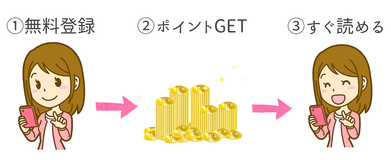 無料登録すると600円分のポイントがもらえます。そのポイントを使って漫画を読みましょう♪